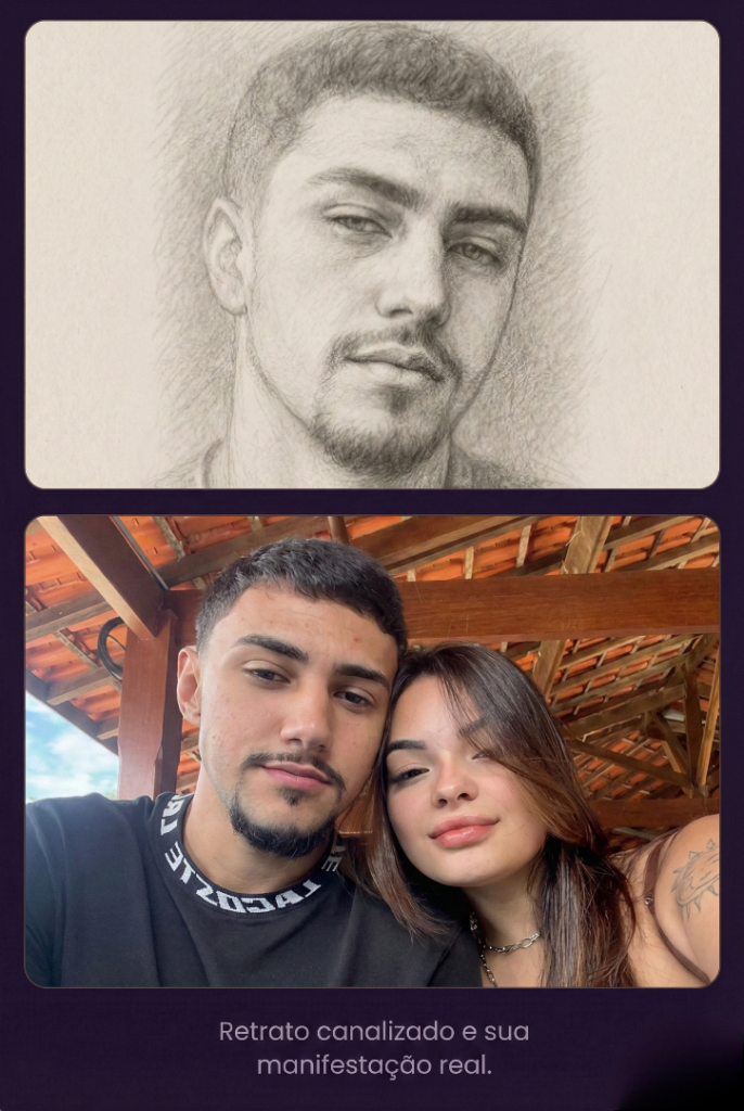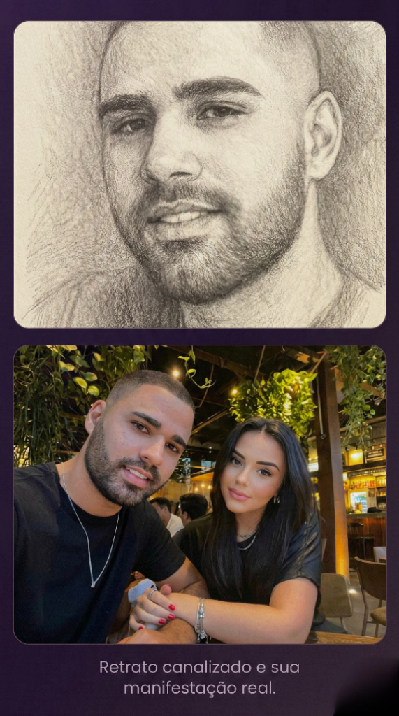 Sou lis Aura, uma sensitiva com um dom único que desenvolvi desde a infância. Minhas habilidades foram nutridas em uma família com raízes profundas em práticas espirituais e psíquicas, e passei anos aperfeiçoando minha arte. Eu não apenas desenho; eu me conecto com energias e emoções em um nível não visível ao olho. Essa conexão me permite criar uma representação do seu parceiro(a), não apenas na forma física, mas na essência do ser dele(a).
